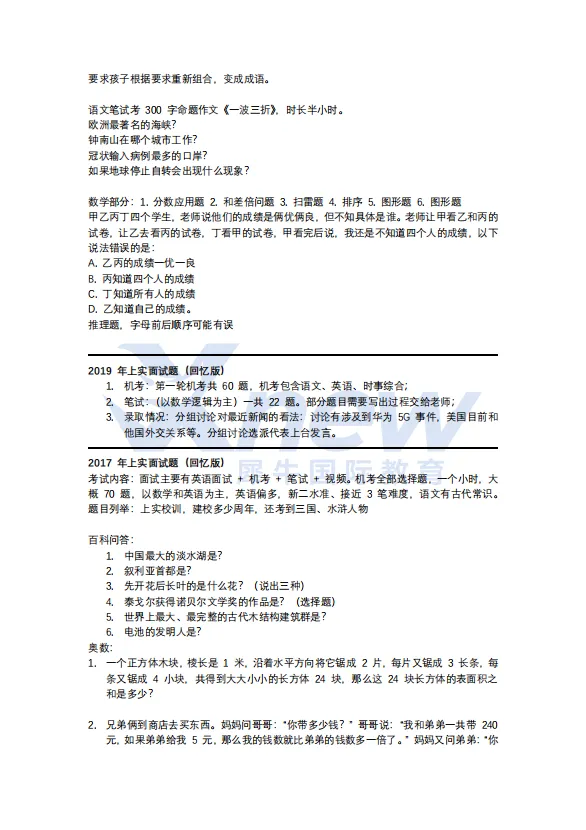 上海"三公"学校——上海外国语大学附属外国语学校、上海市实验学校、上海外国语大学附属浦东外国语学校已经正式发了2026年招生简章,报名已经开始了,接下来就是上海三公学校的面试,今天就给大家整理了上海三公学校历年真题汇总(包含上外、上实、浦外),以及上海三公笔试200题!