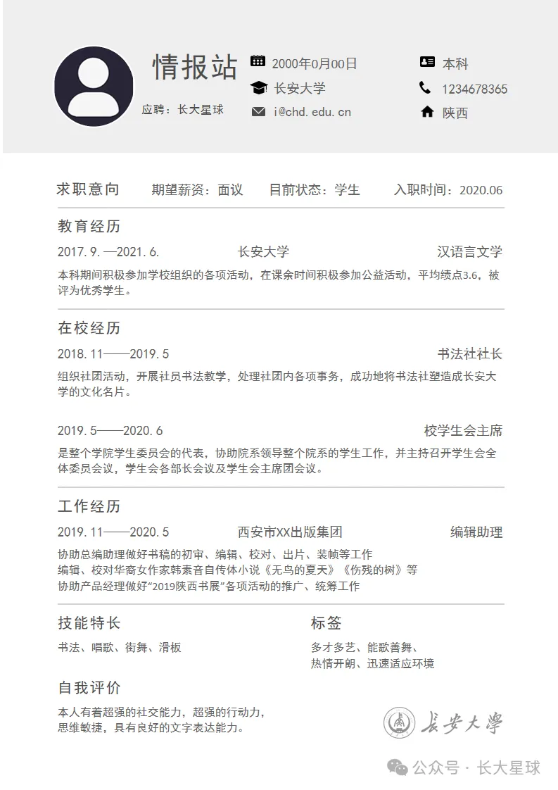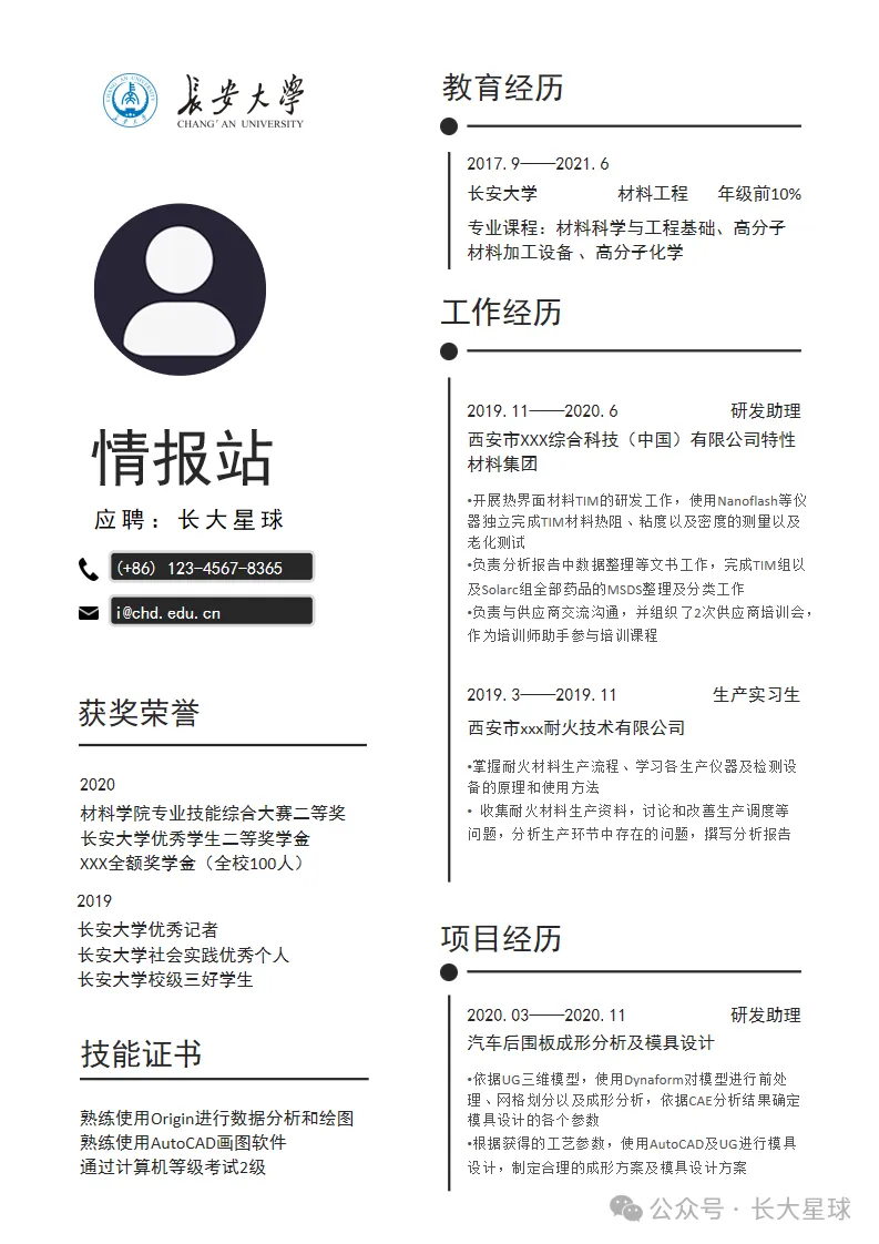 >长安大学简历模板|竞赛・实习・升学全都适用!