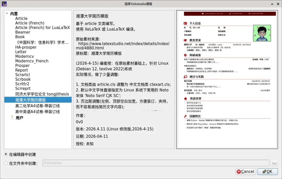 * 编者按:2026-4-15, 针对 Linux 系统(Debian 12.13, texlive 2022),
