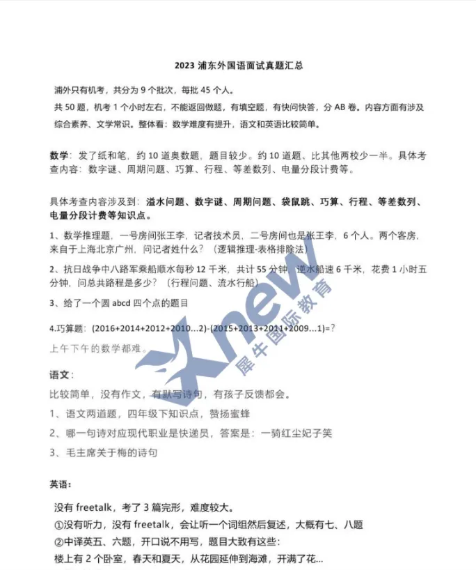 👉浦外:机考为主,侧重外语听力速记和寄宿适应力,含学科笔试
