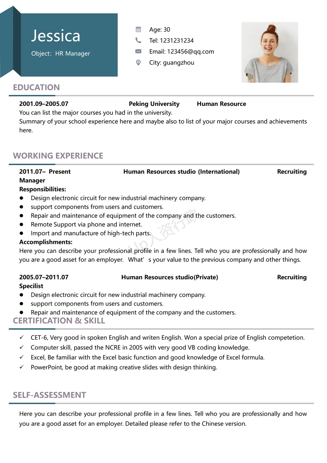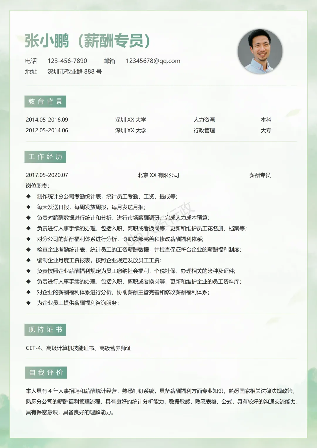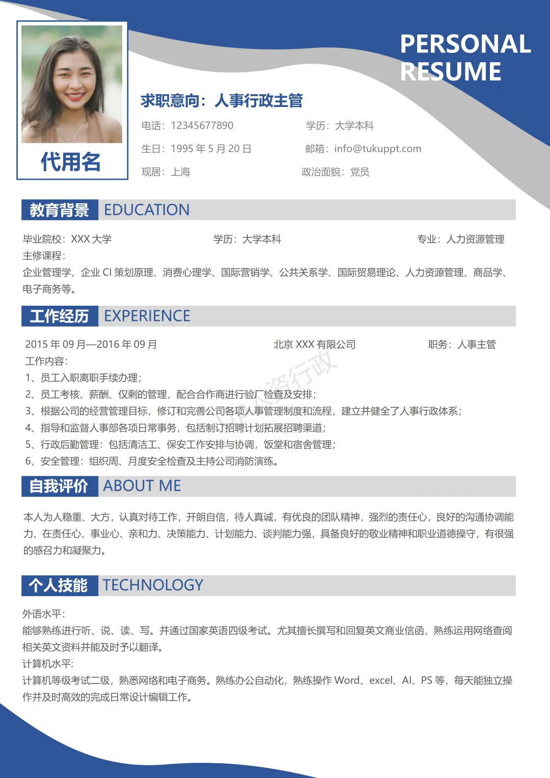 当前位置:首页>简历模板>人事求职简历模板.doc