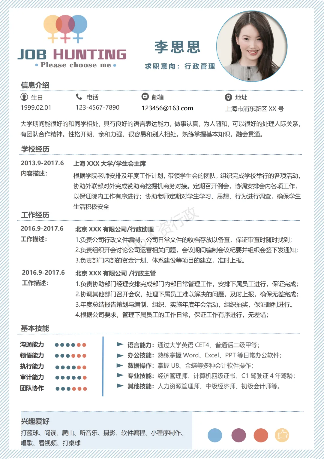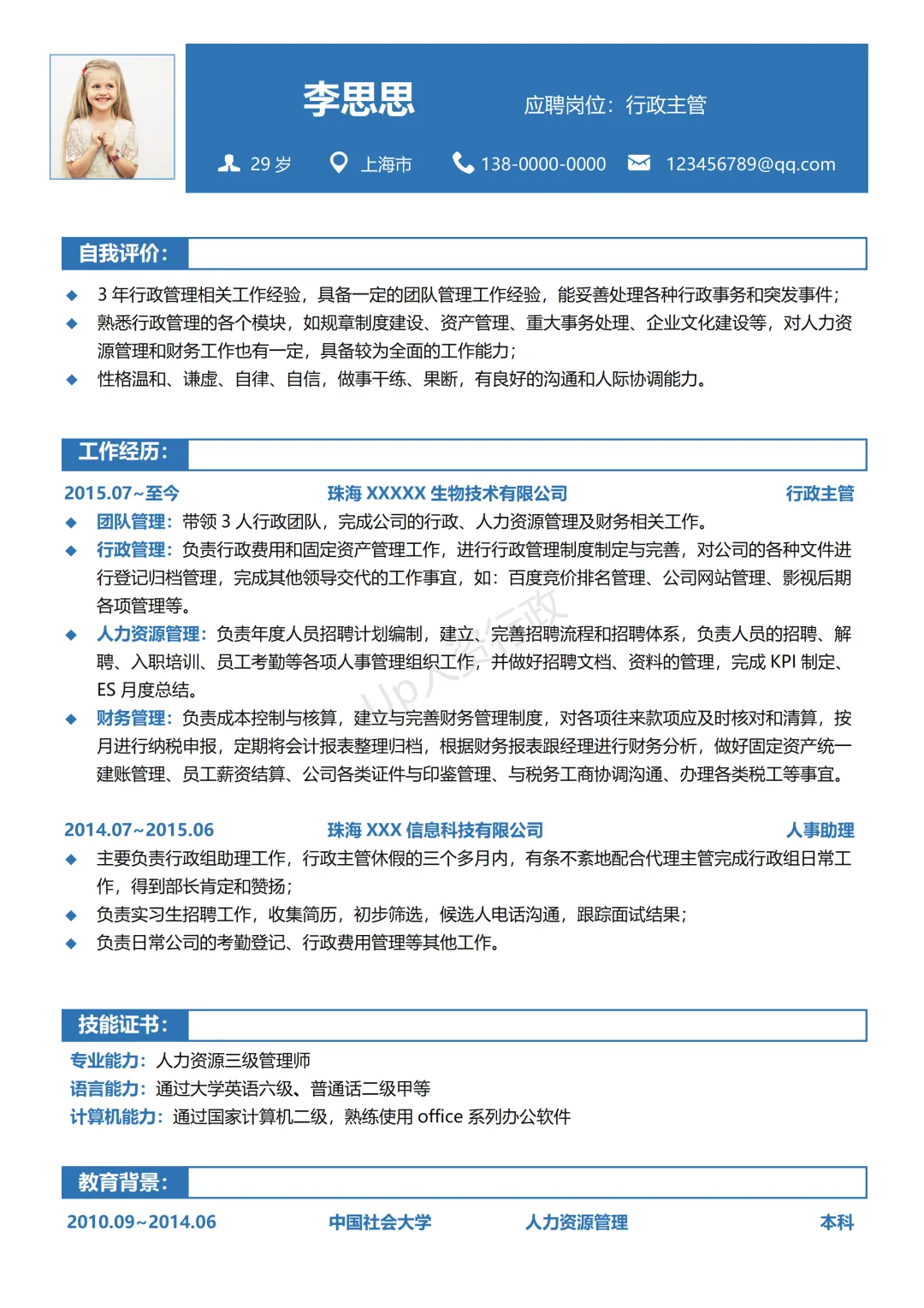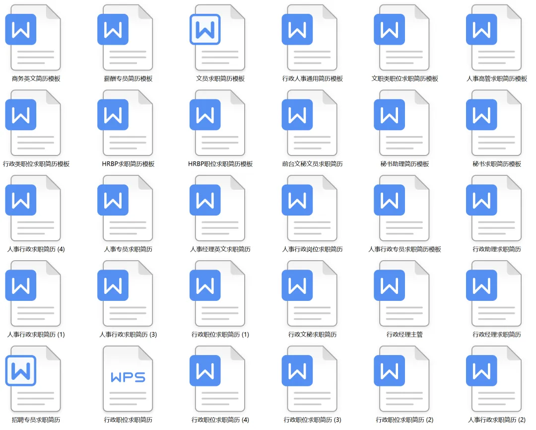 30份招聘专员、薪酬专员、行政专员、人事经理、秘书、前台、文员等人事行政岗位的求职简历模板,word版本,文字可修改。