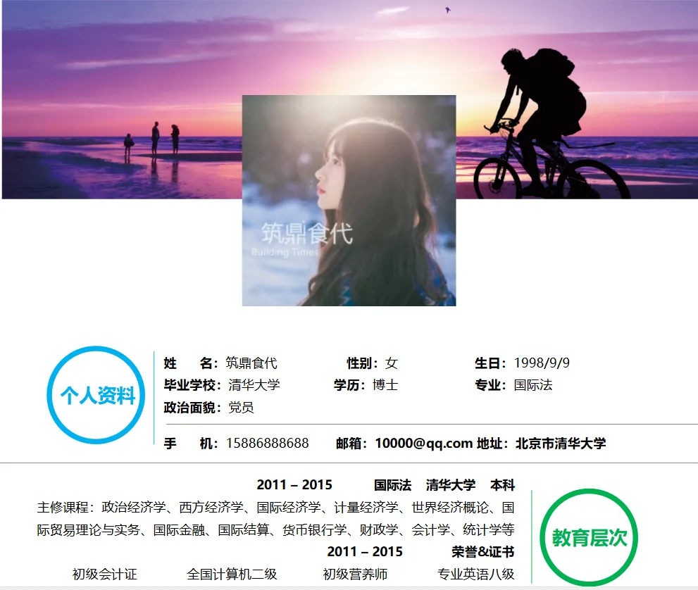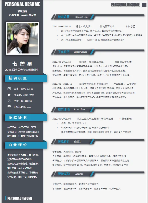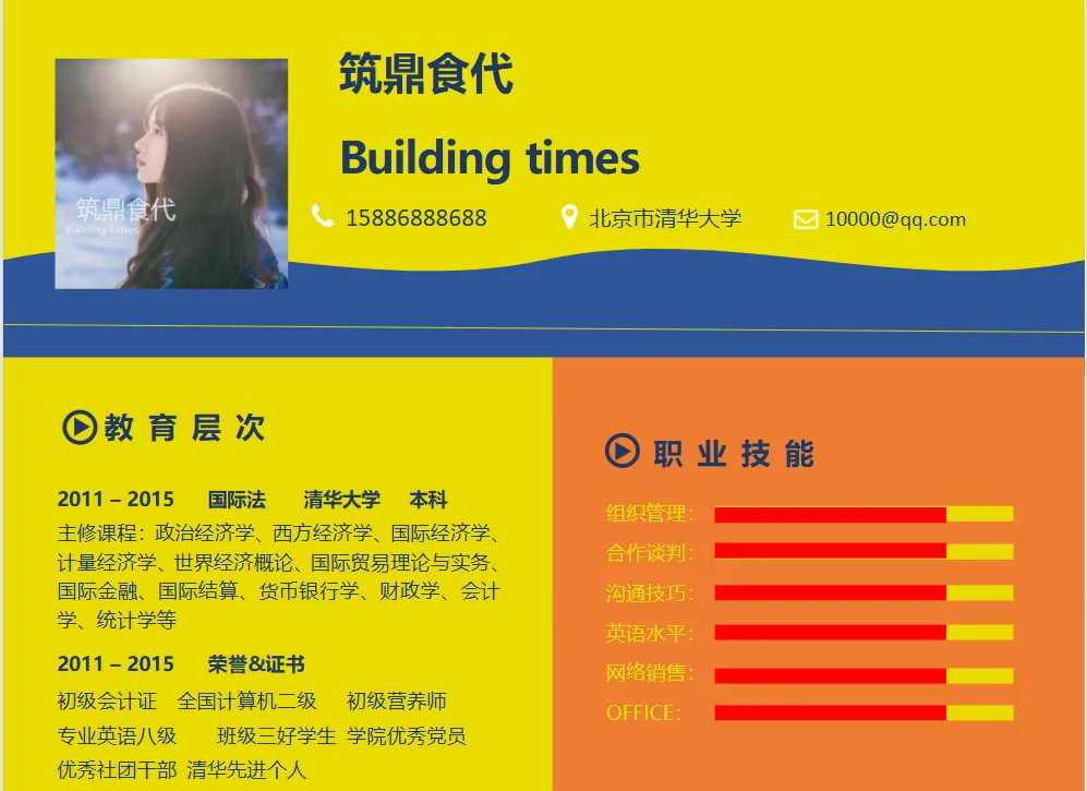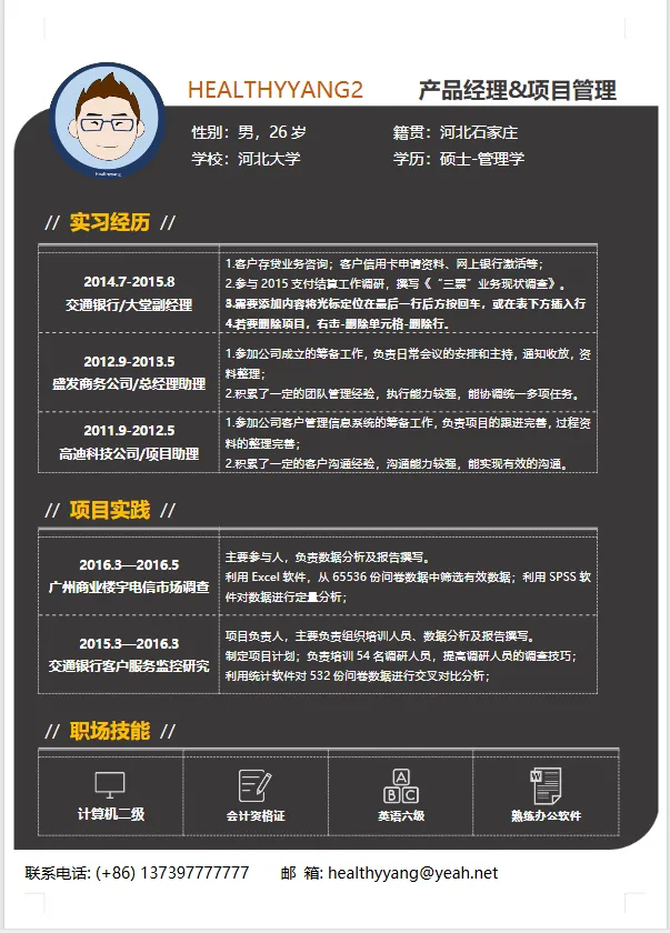 本文分享的是【简历模板】