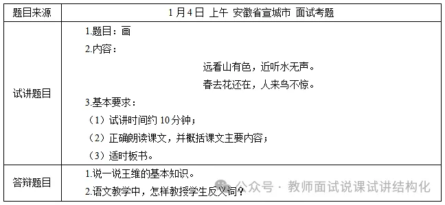 小学语文面试《画》试讲真题+解析+答辩