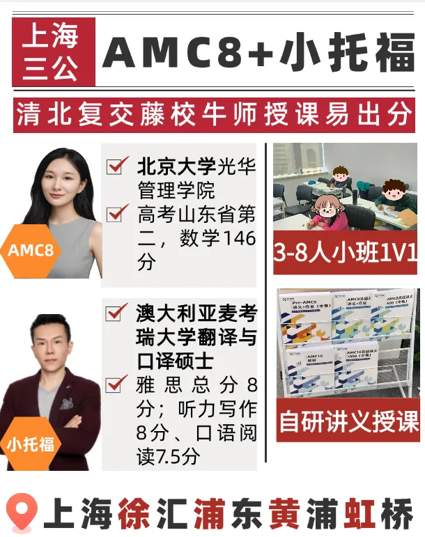 三公培训全程班:开设AMC8培训课程,小托福培训课程,帮助学生提升数学逻辑思维和英语能力,提升竞争力拿到面单。