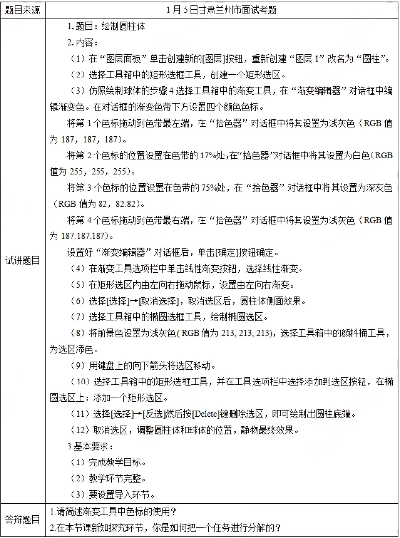 教师:上节课,我们学会了怎么利用渐变工具去绘制一个立体感的球体,今天我们学习怎么使用渐变工具来绘制一个圆柱体。