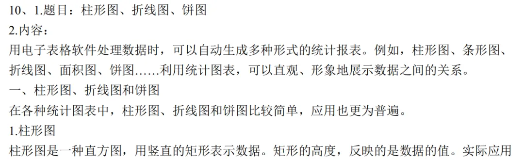 ——引入新课——建立统计图表、柱形图、折线图、饼图。