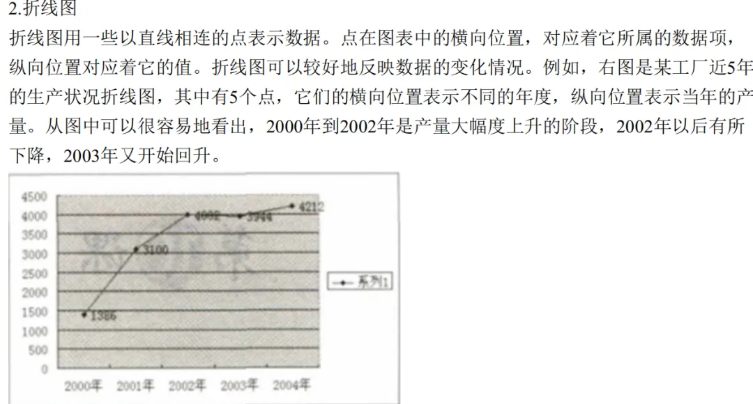 之后教师进行总结:折线图用一些以直线相连的点表示数据。点在图表中的横向位置,对应着它所属的数据项,纵向位置对应着它的值。折线图可以较好地反映数据的变化情况。