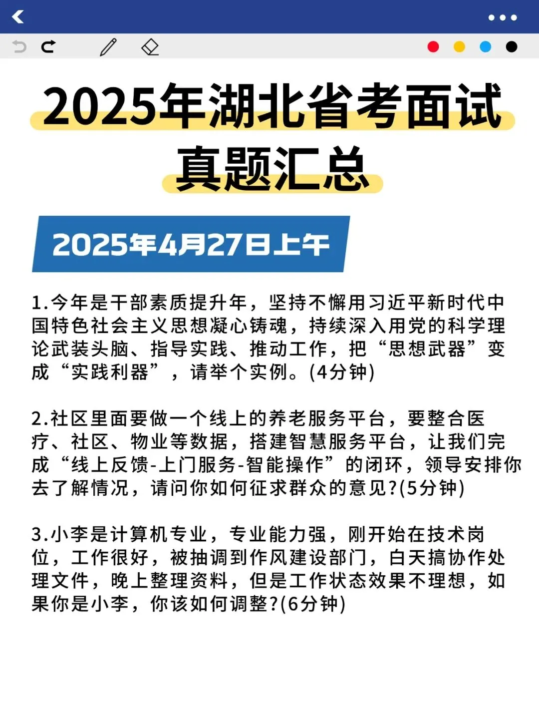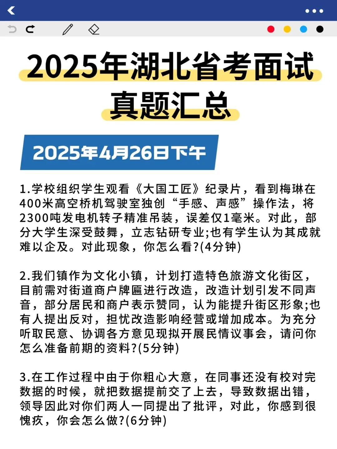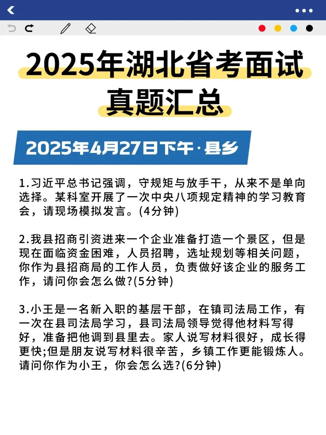 >25年湖北省考面试真题汇总+示范作答!