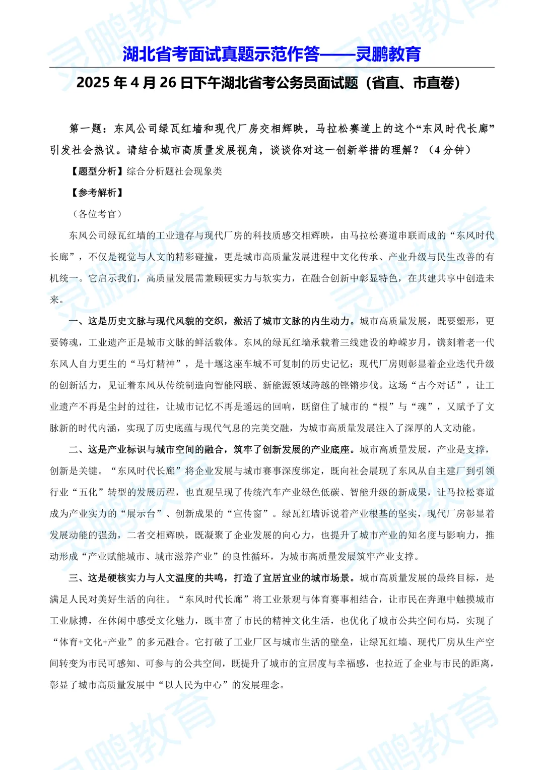 25年湖北省考面试真题汇总+示范作答!