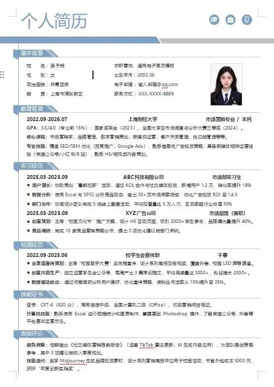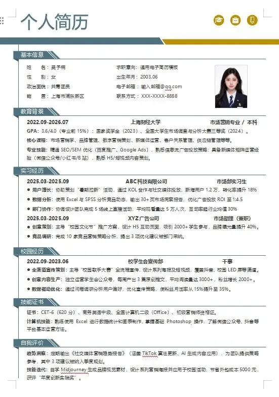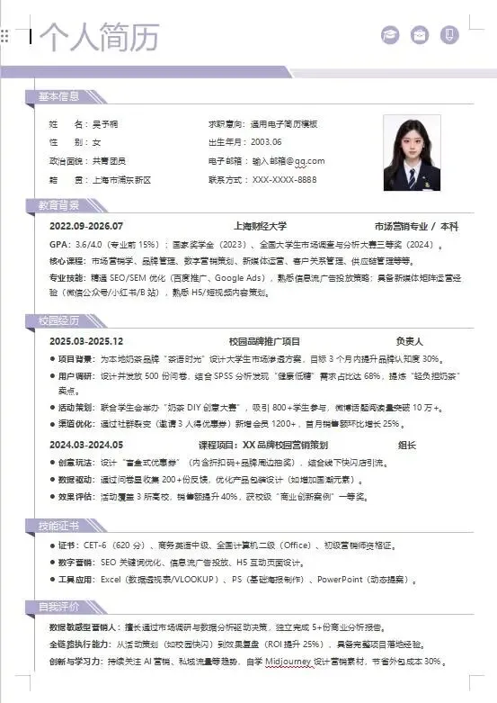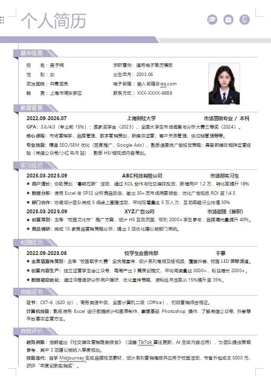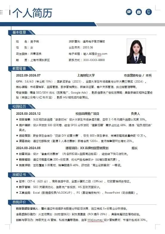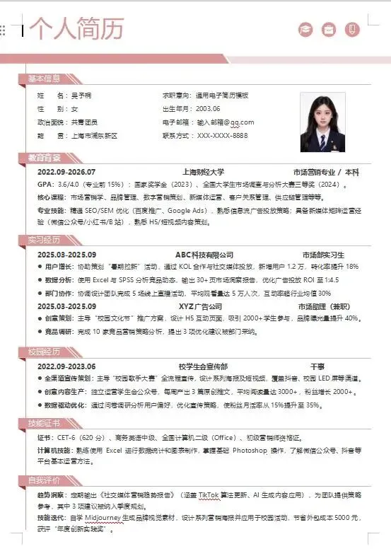 >【2026最新】个人简历模板(word电子版免费保存)可编辑可打印
