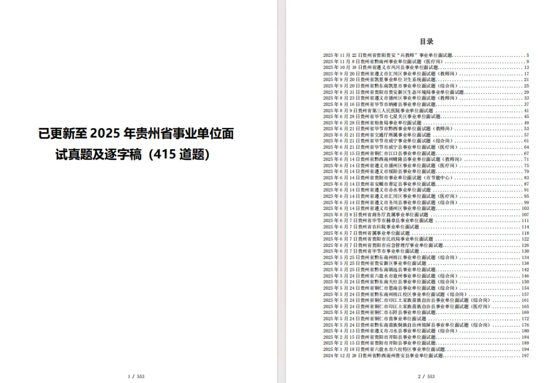 给大家准备了《2023年-2025年贵州事业单位面试真题解析》