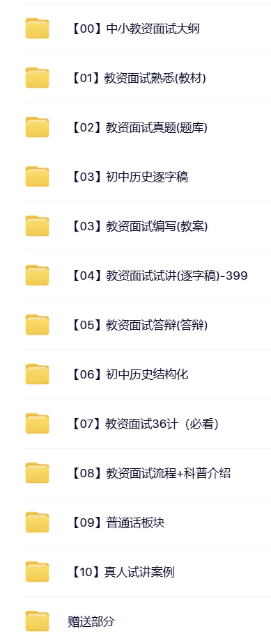 >26上教资面试初中历史备考资料含399篇试讲逐字稿+试讲真题+结构化+教案+答辩+普通话专项+真人试讲示范