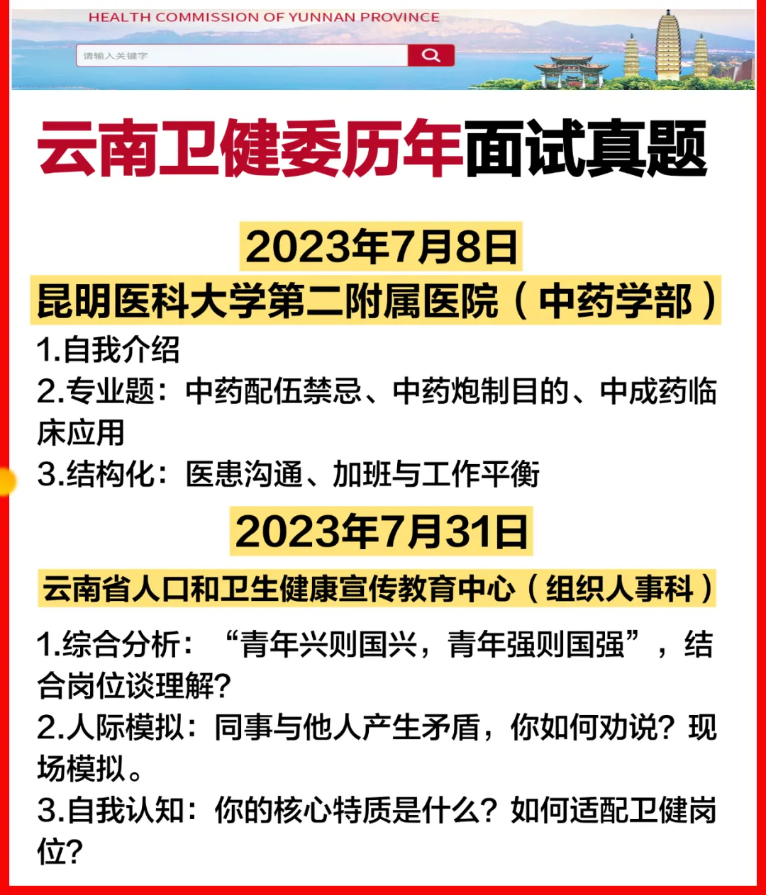 笔试靠刷题,面试靠“演”!在云南卫健委面试考场中,很多人不是输在专业知识不足,而是输在了“没见过、没练过、没思路”!