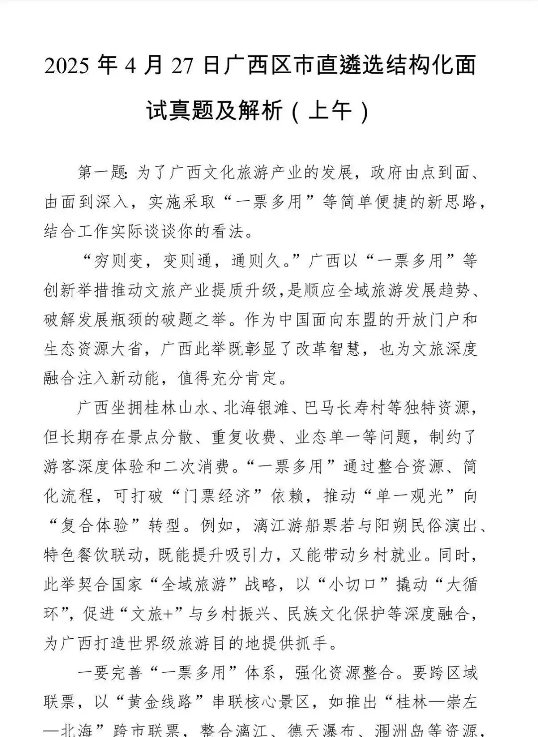 2019-2025广西遴选面试真题及答案解析