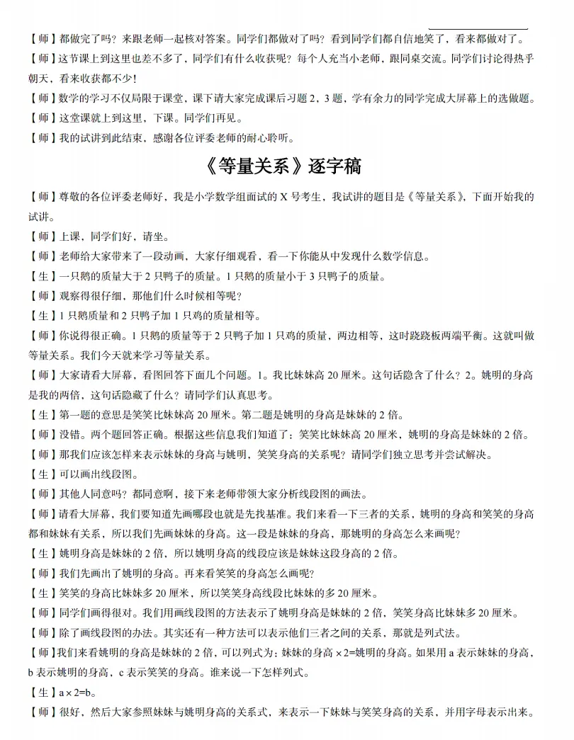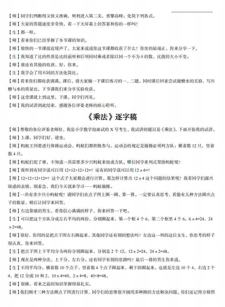 26上教资面试小学数学备考资料含1651篇试讲逐字稿+试讲真题+结构化+教案+答辩+普通话专项+真人试讲示范