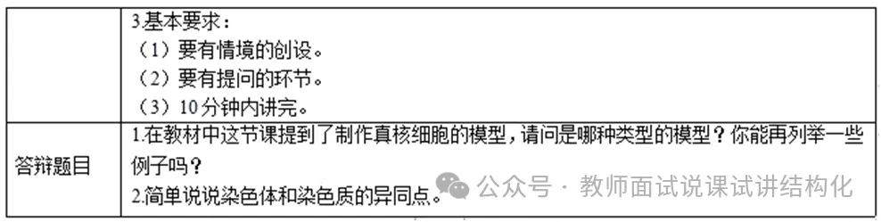 高中生物面试《染色体的结构》试讲真题+解析+答辩