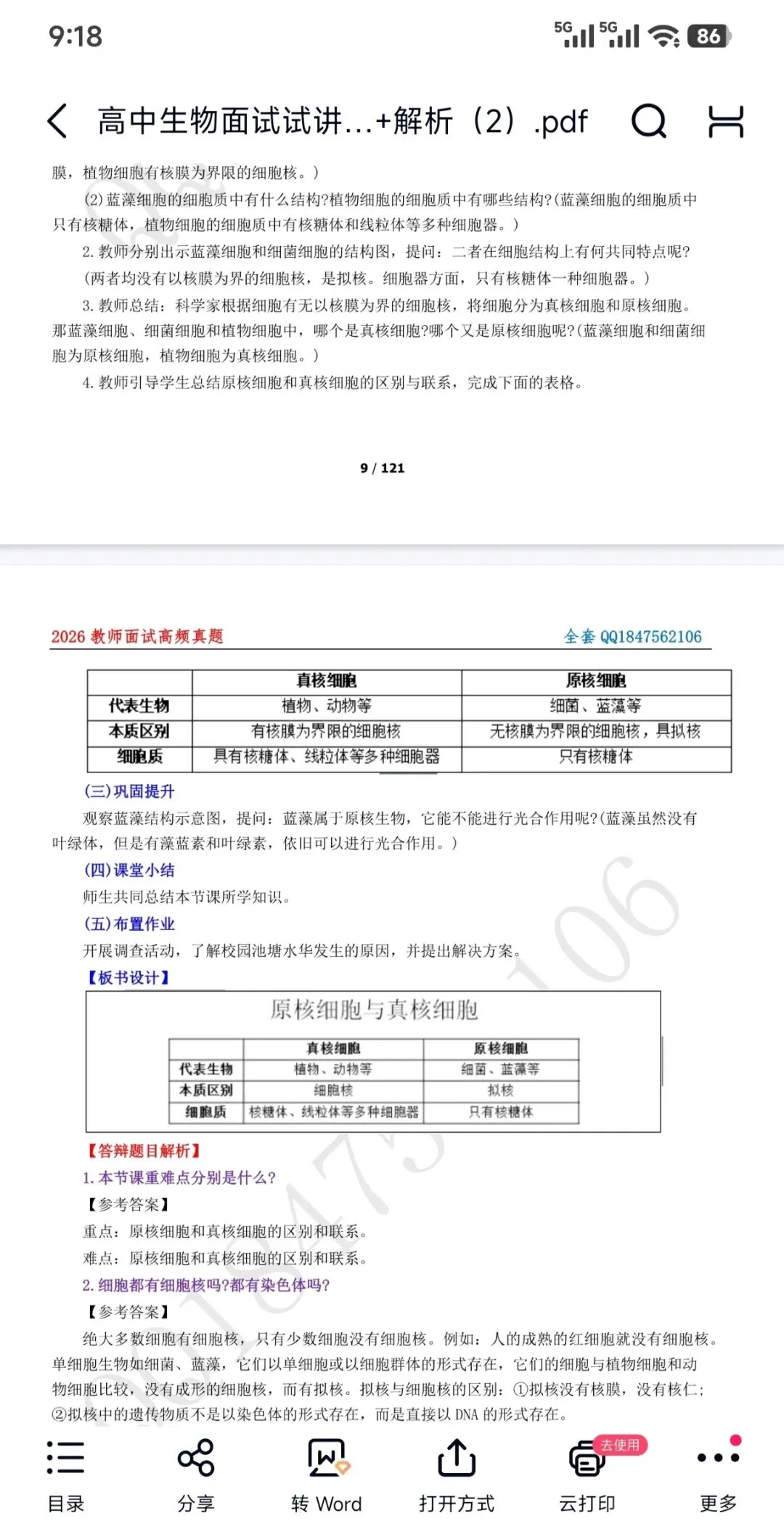 高中生物面试《原核细胞和真核细胞》试讲真题+解析+答辩