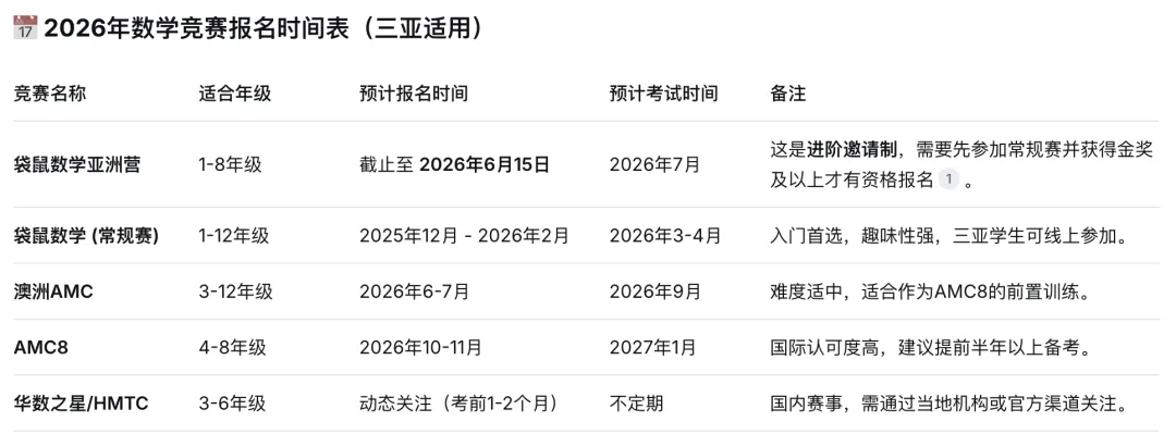 全国性奥赛停办后,三亚孩子能参加的数学赛事主要有这几类: