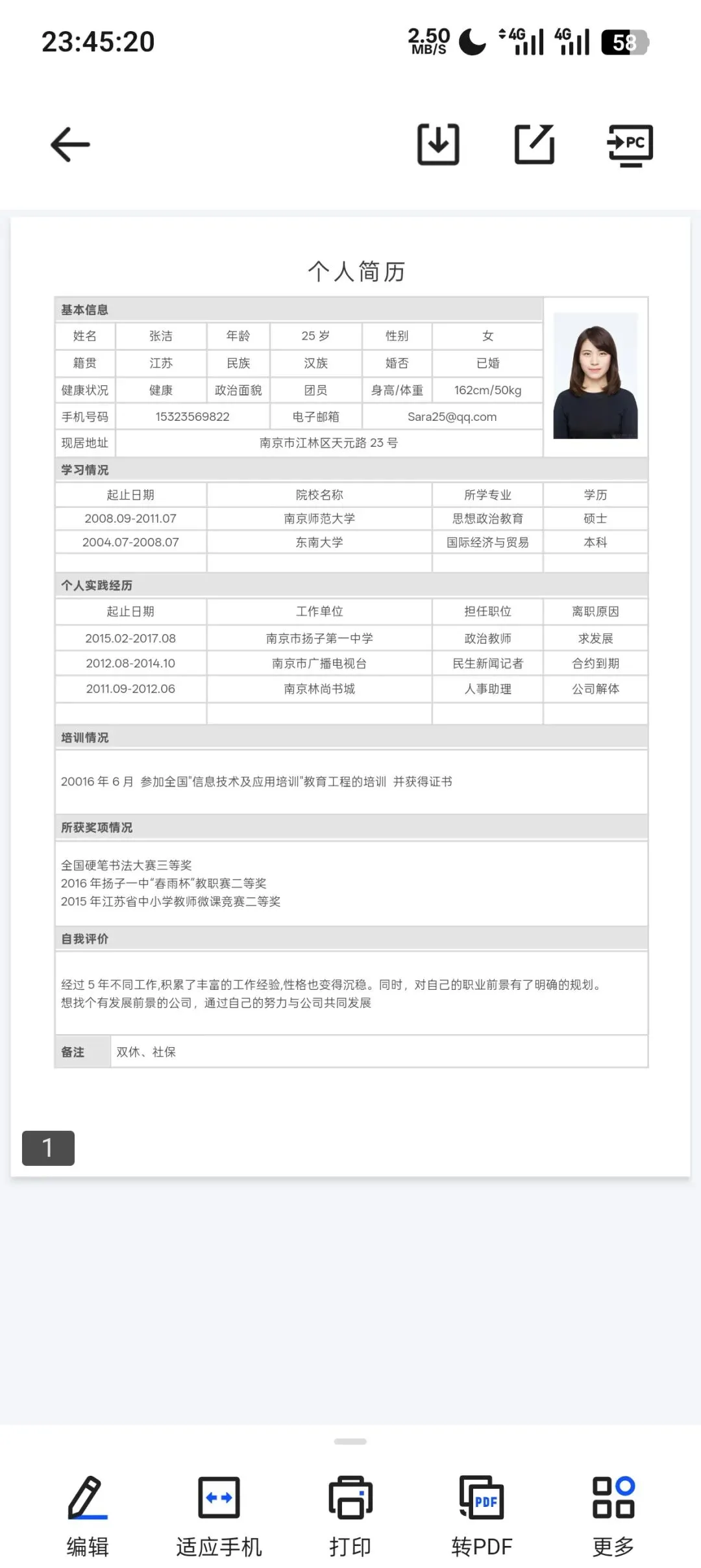 免费个人简历模板(可在线编辑)可导出PDF