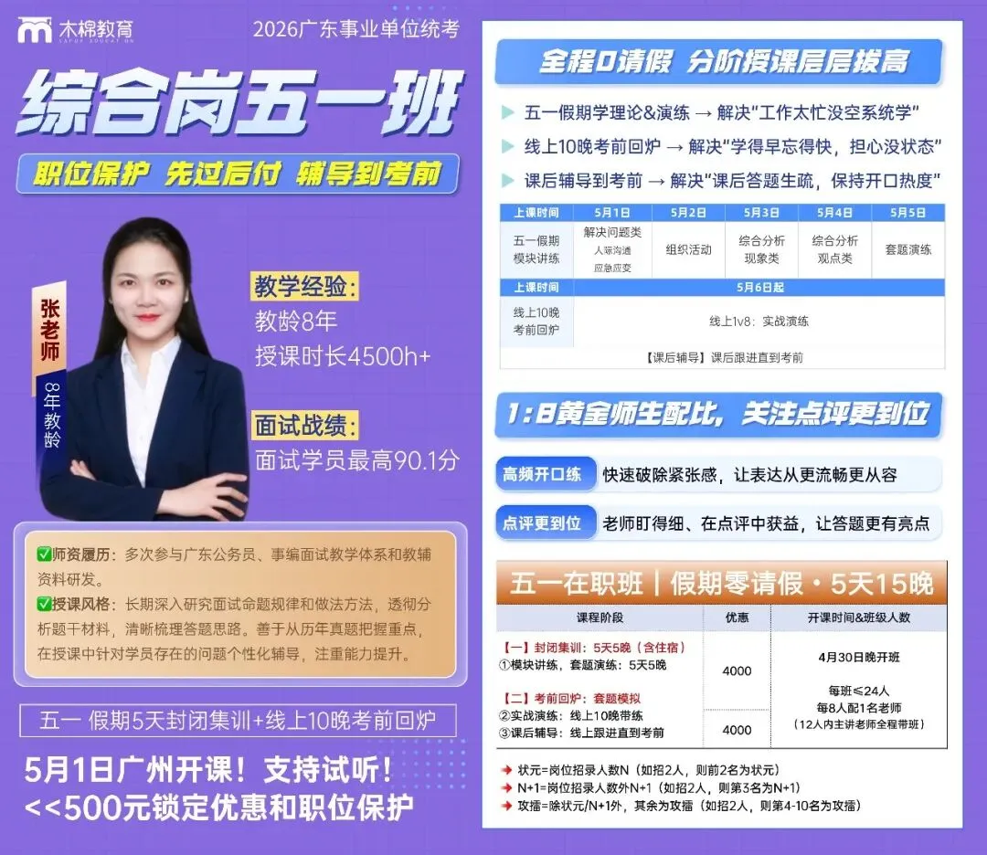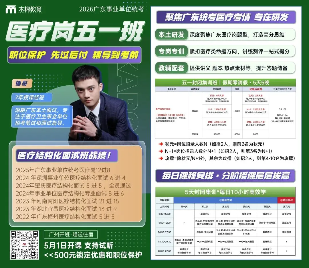 木棉综合/医疗/教师岗五一专项开课,严选8年+教龄师资,全程跟进到考前,支持0元入学,线上线下均可试听!助你高分上岸!