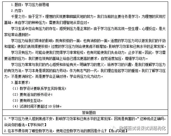 初中道德面试《学习压力新思维》试讲真题