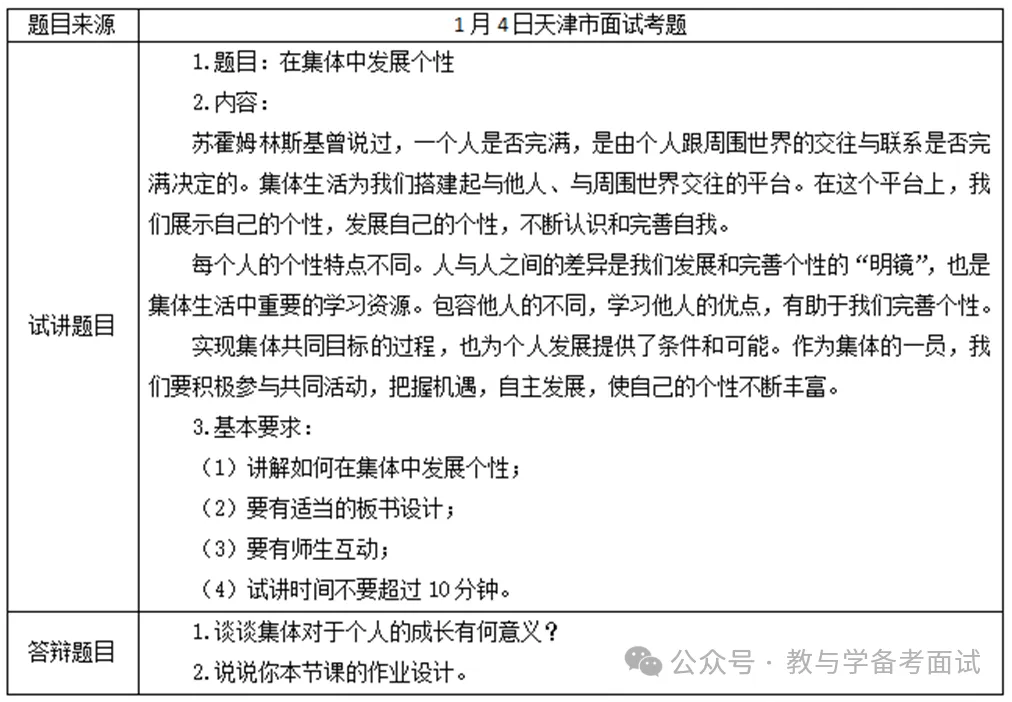 初中道德面试《在集体中发展个性》试讲真题