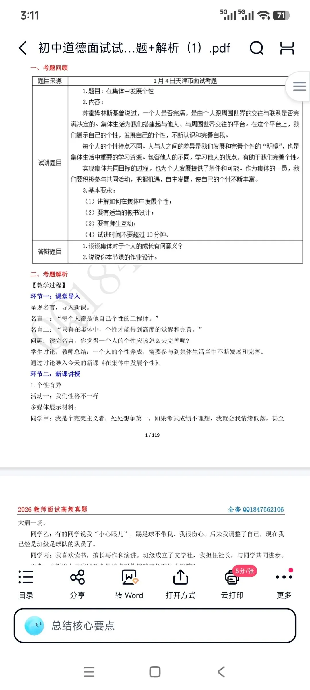面试真题:重点看历年面试真题,历年高频,考题+教学过程思路分析,你抽的考题也许就在里面,300页左右文档!排版好,可以打印出来复习!