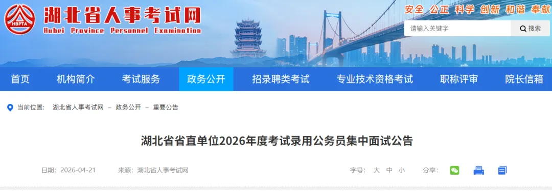 ✅2026年湖北省公务员考信息汇总