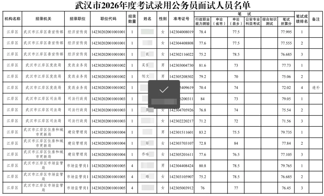 2026年(武汉市)考试录用公务员面试人员名单.pdf