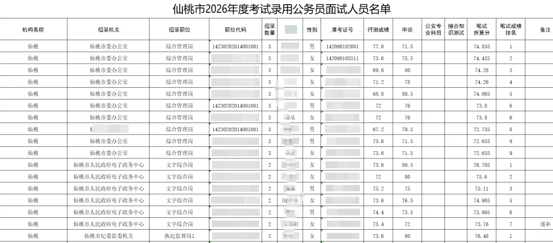 2026年(仙桃市)考试录用公务员面试人员名单.xls