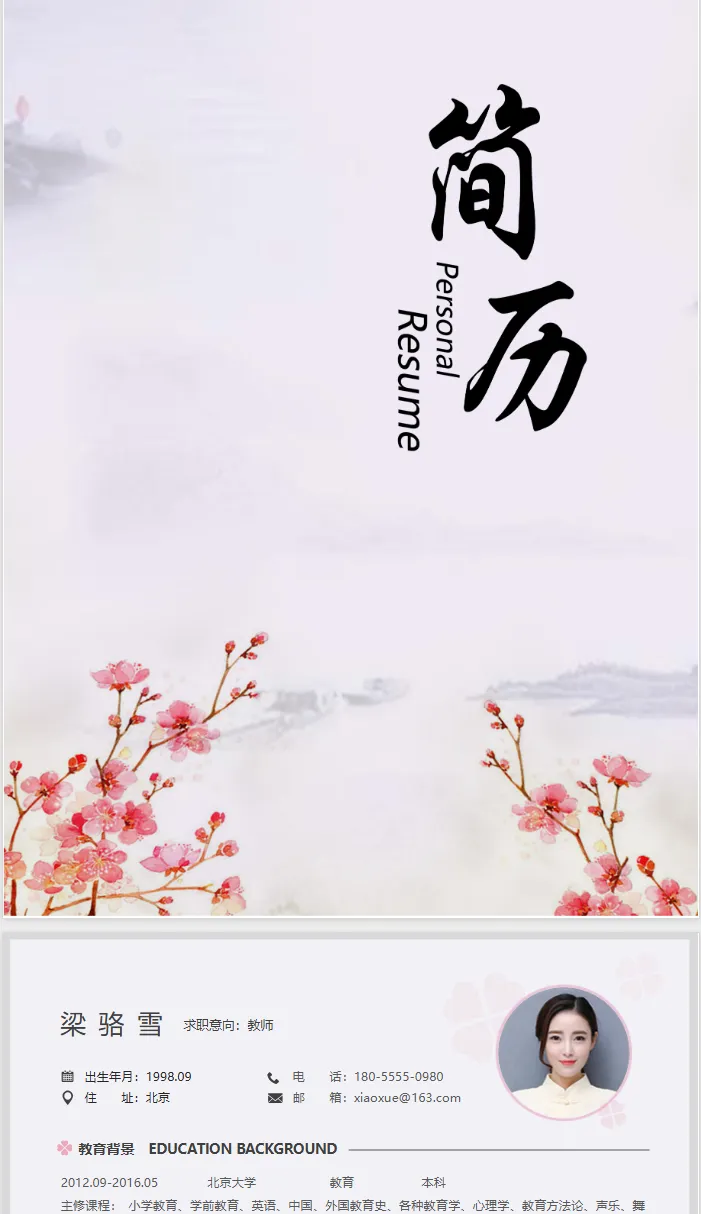2026最新个人简历模板,可编辑,可改写,适用应届生,复试简历,PPT简历模板,四页水墨模板