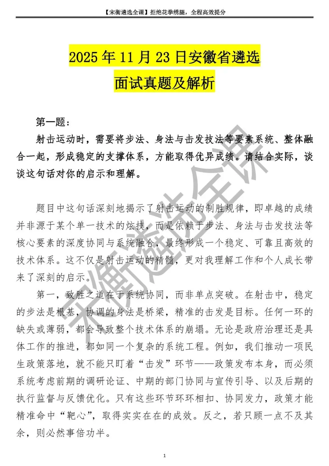 >2025年11月23日安徽省遴选面试真题及解析