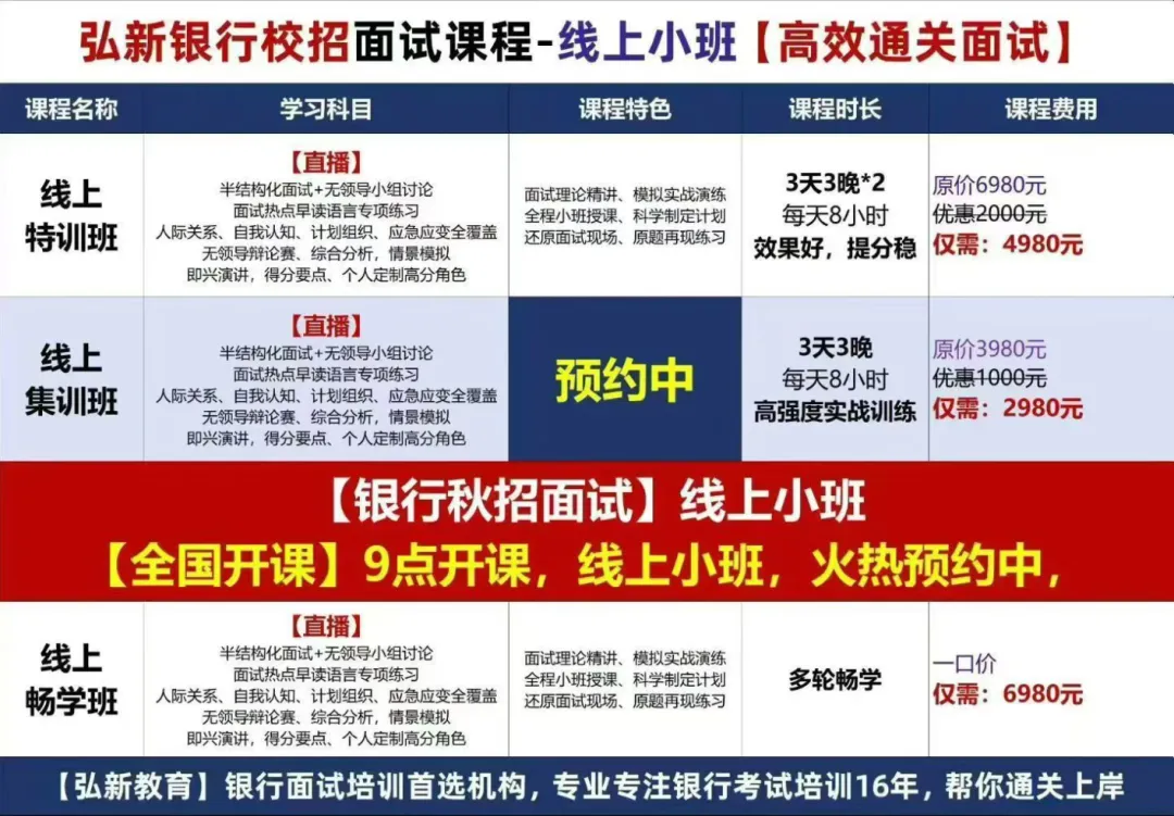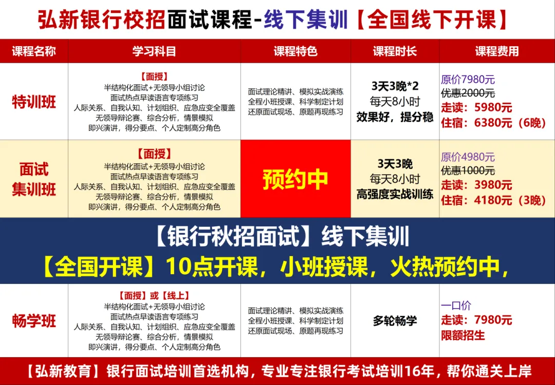 5·面试报班就选择弘新教育,弘新教育专业专注银行培训16年!值得信赖!
