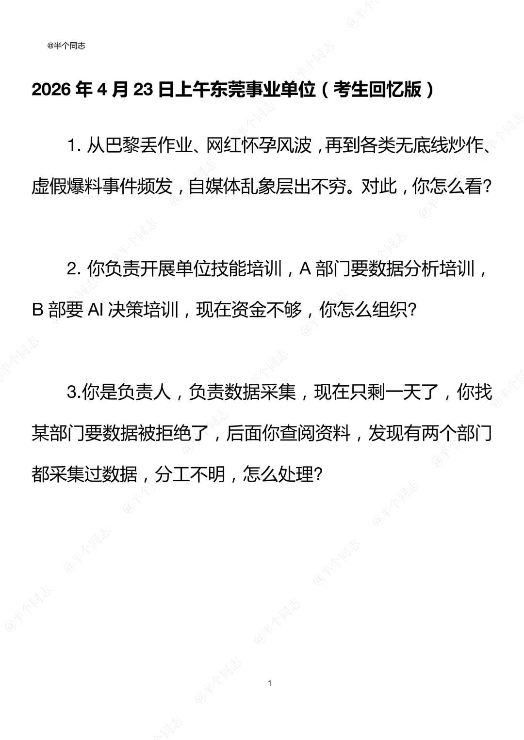 面试考情:15分钟3题(含听题时间),无题本有纸笔,考官读题,读一道答一道。