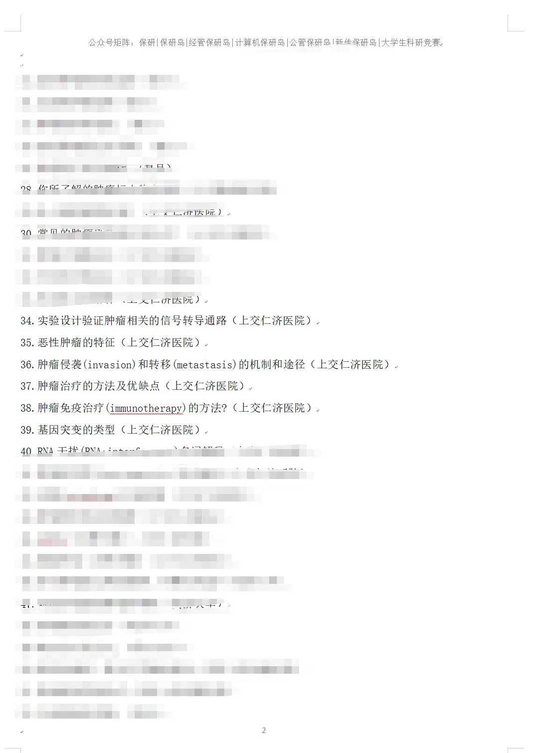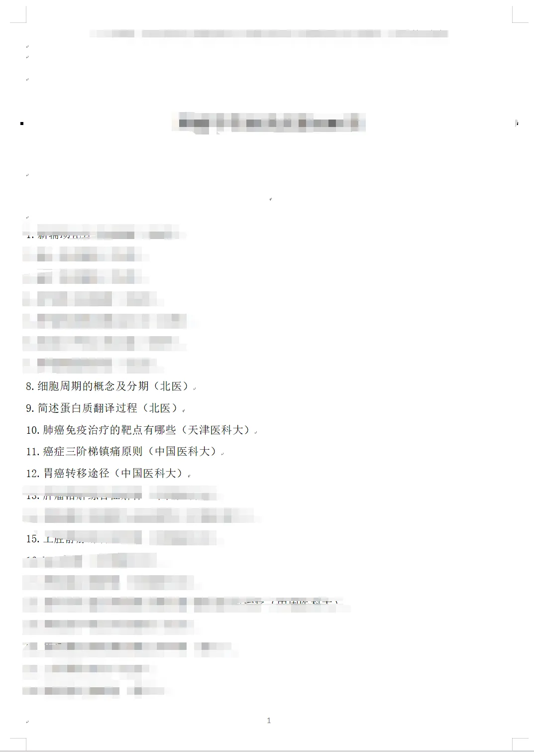 肿瘤学笔面试真题135道