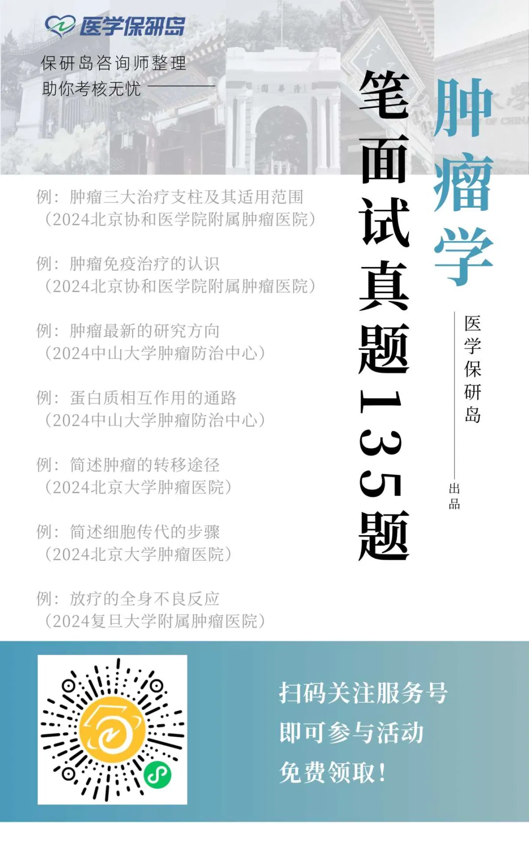 肿瘤学是一门医学科学,专门研究肿瘤的起源、发展、诊断、治疗和预防。近年来相关领域科研迅猛发展,加上肿瘤发病率升高、大众重视程度提升等因素,肿瘤科就业前景较好,保研竞争也越来越激烈。而提前了解院校往年真题可以有效摸清院校考核风格及偏好,为正式考核做好准备。