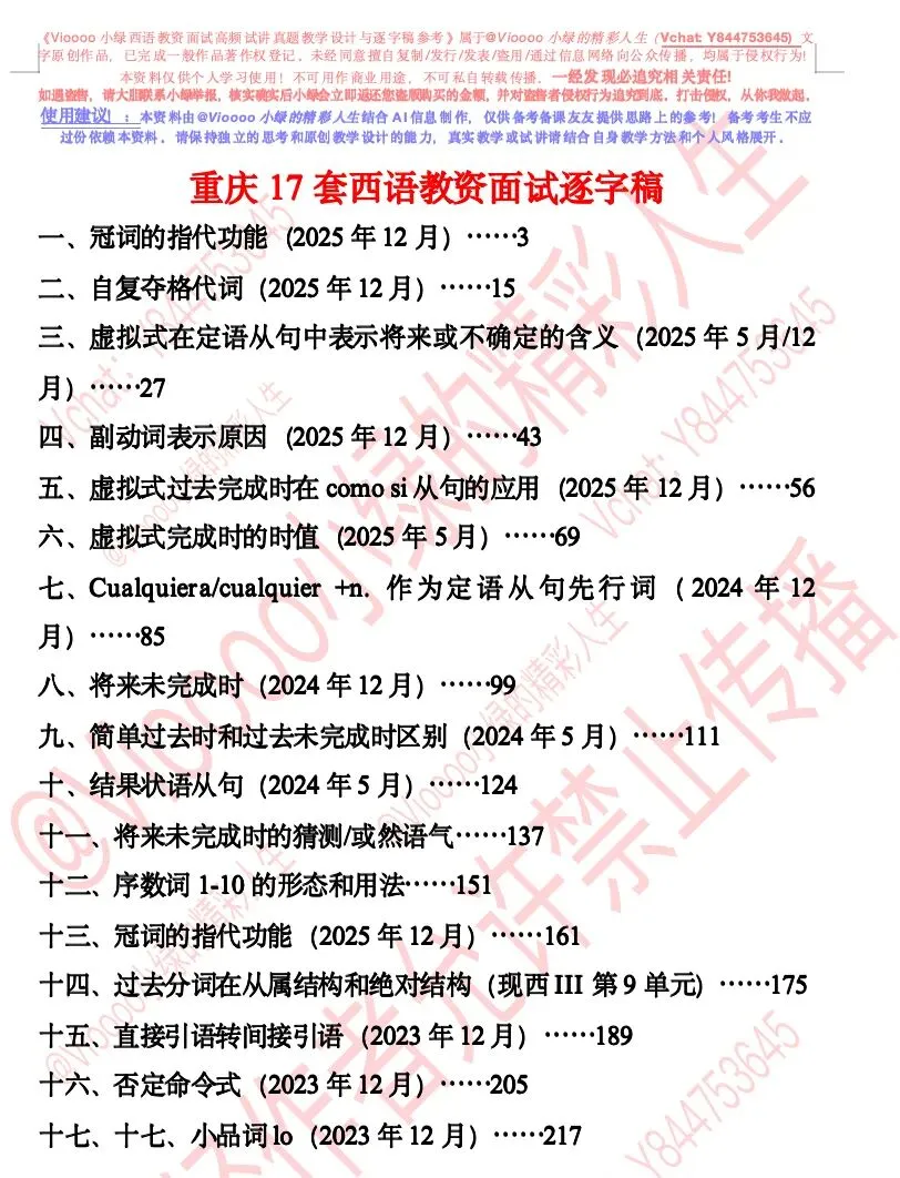 >西班牙语教资面试真题逐字稿(重庆考区)最全最新版本