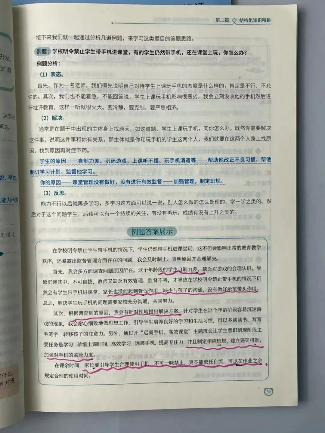 《中小学结构化面试学霸笔记》收录72道高频真题,从教育理念到应急应变,从人际沟通到综合分析,每道题都有标准答题思路和参考答案,让你面对考官从容不迫,对答如流。