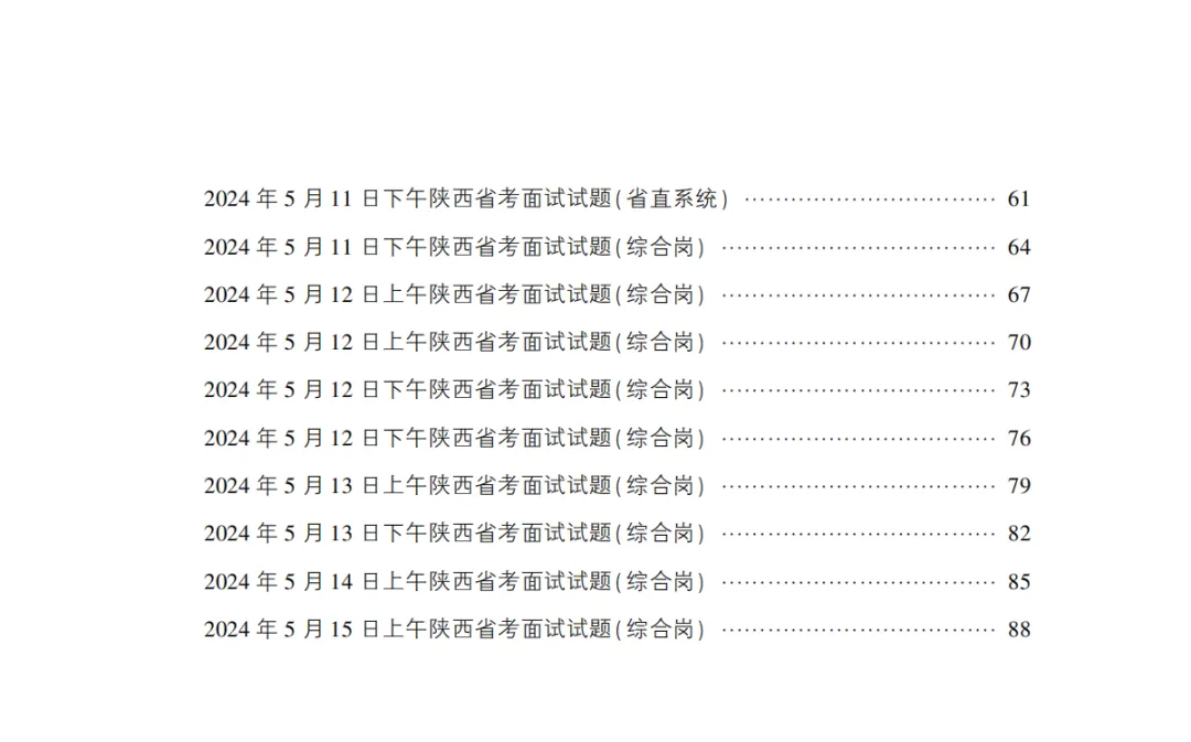图图直接整理了近 2 年陕西省考面试的全部场次真题,从 2024 年 5 月到 2025 年 5 月,每天上午 / 下午的试题都完整收录,并有解析