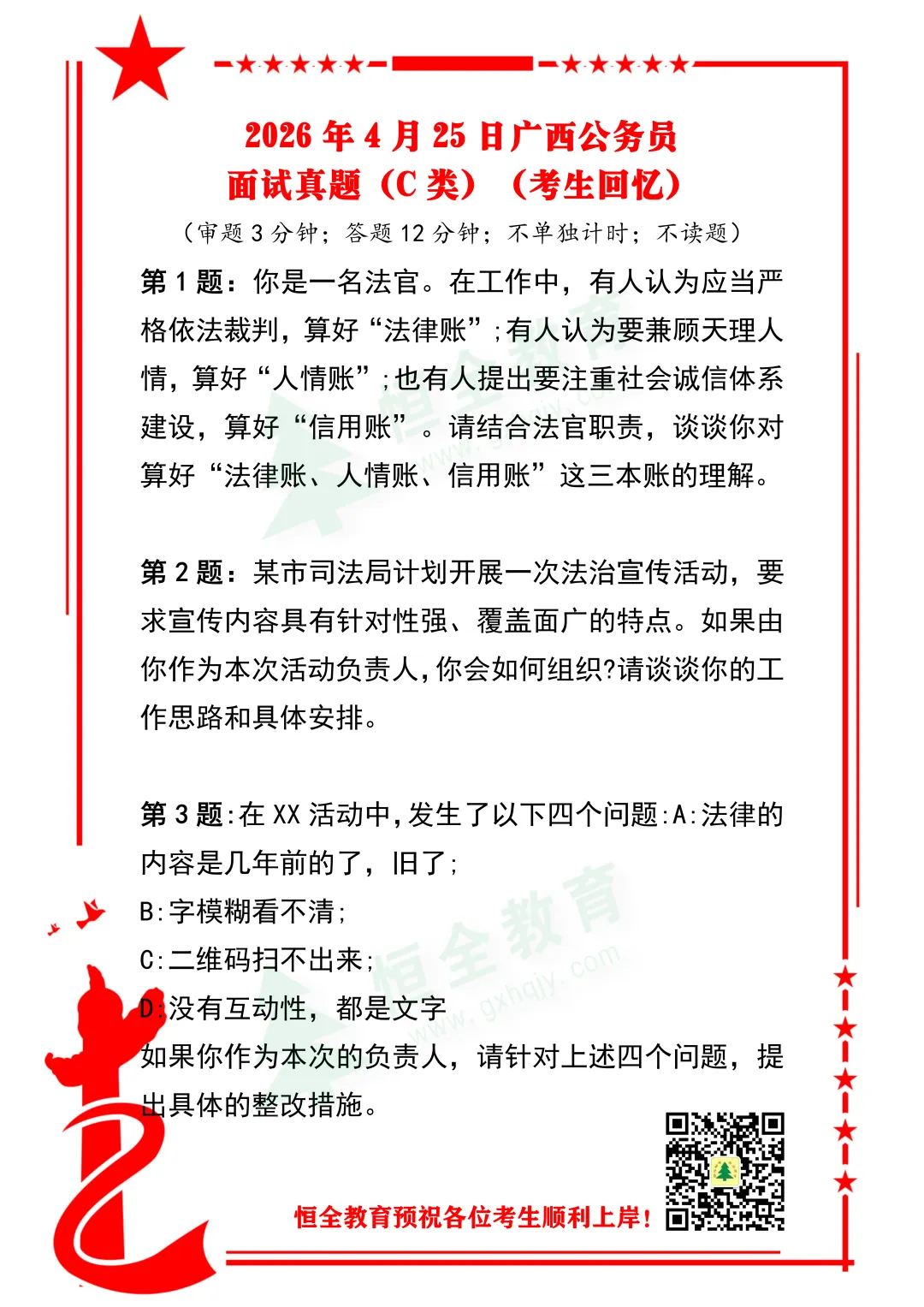 【真题速递】2026年广西区考4月25日面试真题(A/B/C类)完整版出炉!考情有变,速来围观!