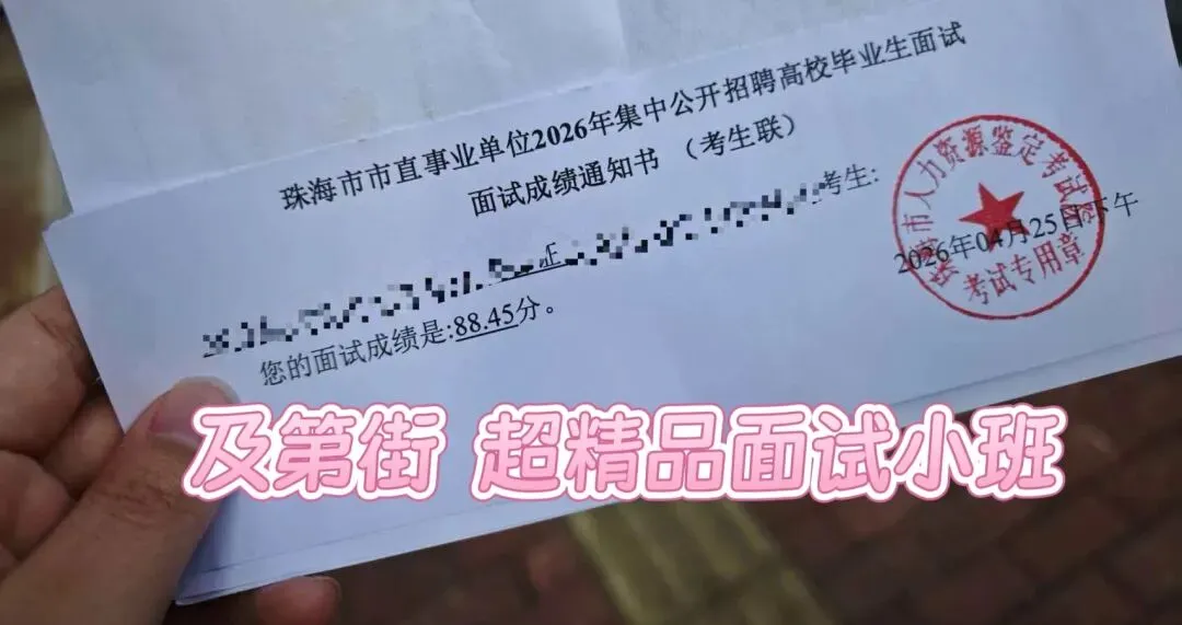 深耕苦练终有回响,考场逐梦不负韶华。及第街各位学员从容应考、稳定输出,以扎实的技术功底从容应对各项考验,凭过硬实力斩获理想佳绩,满载荣光,成功上岸!目前,仅有极少部分学员完成面试,还有多数学员蓄势待发,小班面试成绩记录持续刷新中!