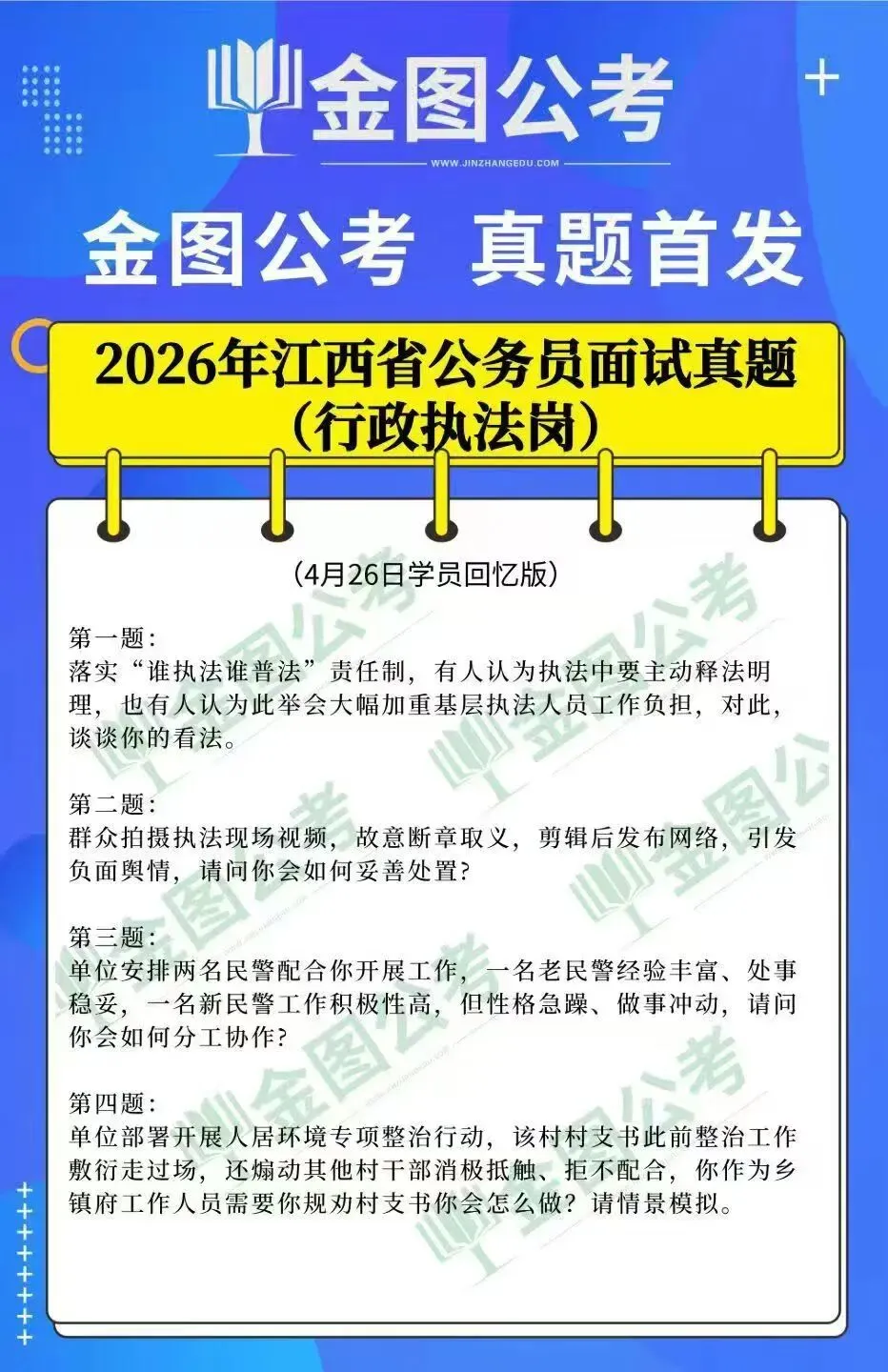 2026年4月26日江西省公务员面试真题(行政执法卷)题本及解析