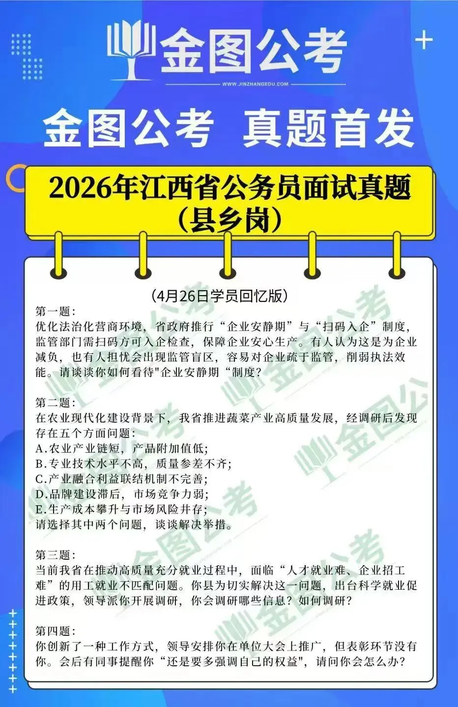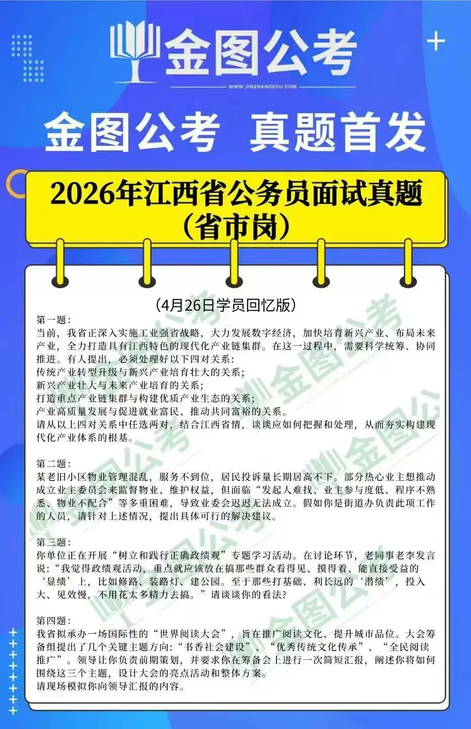 更新!2026年4月江西省考面试真题