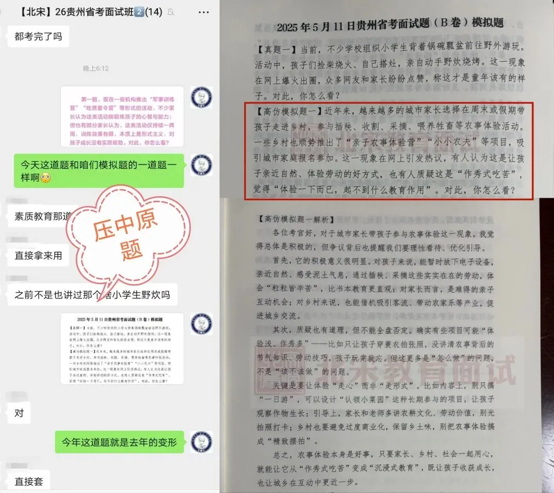 ✅ 押中原题:(今天B卷第一题“吃苦夏令营”的现象类题目与我们针对去年贵州省考面试真题设计的一道模拟题基本一致)成绩来自长期的教研沉淀,实力体现在每一份真实答卷里!之前我们就在微信公众号里推送过这道模拟题,感兴趣的同学可以点击下方链接跳转: