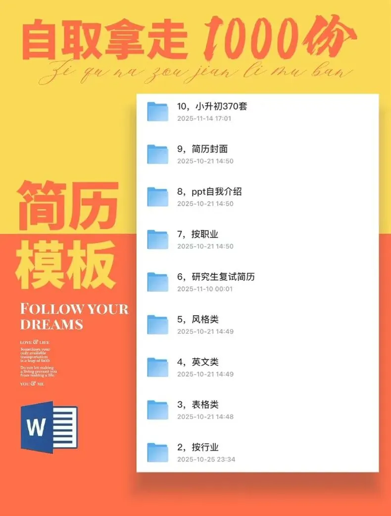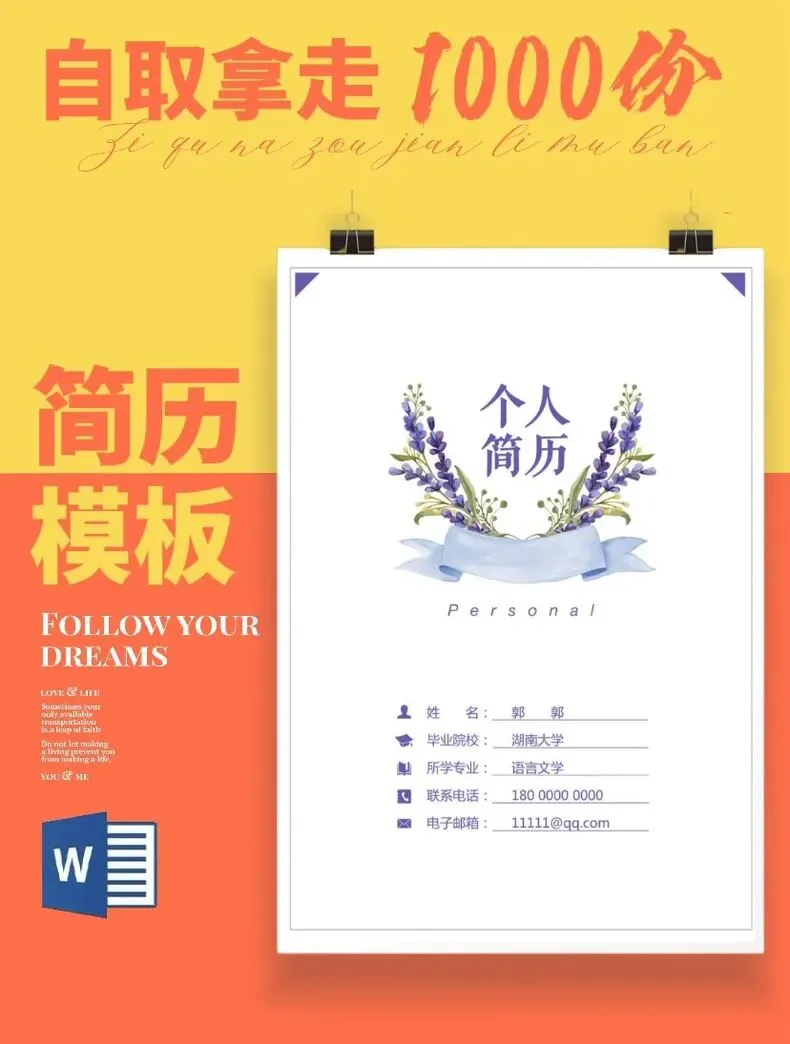整理了1000套简历板模,,适合个人球职、應届生和跳槽.单页/多页、简约/疮意风格全覆盖,涵盖70多个行业Word格式直接编辑,电电脑都能用!!,有点东西,挺好,小葱拌豆腐,一清二白!!即刻免费获取,助你氢松应对各种求职场景»