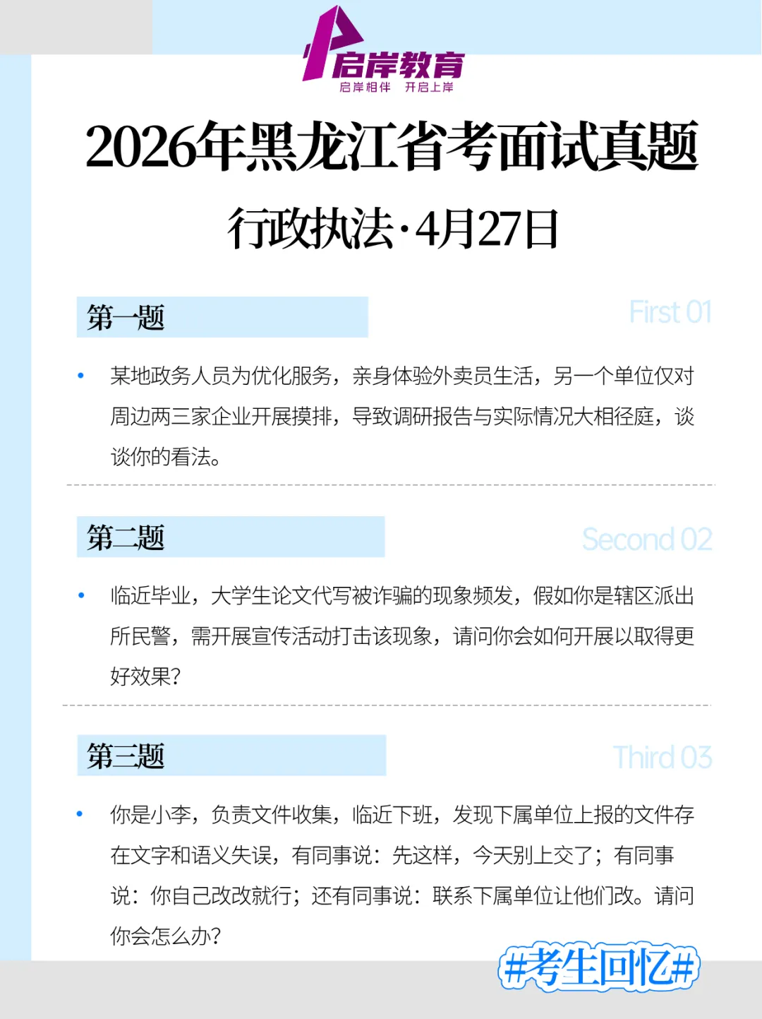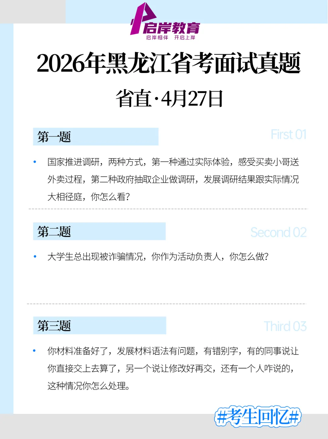 >2026年黑龙江省考面试真题(4月27日回忆版)!