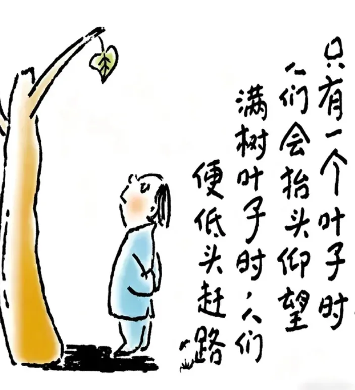 第三题:漫画题-如果树上只有一片树叶,人们会抬头仰望,如果树上有很多树叶的话,大家会低头赶路,对此你有什么启示?