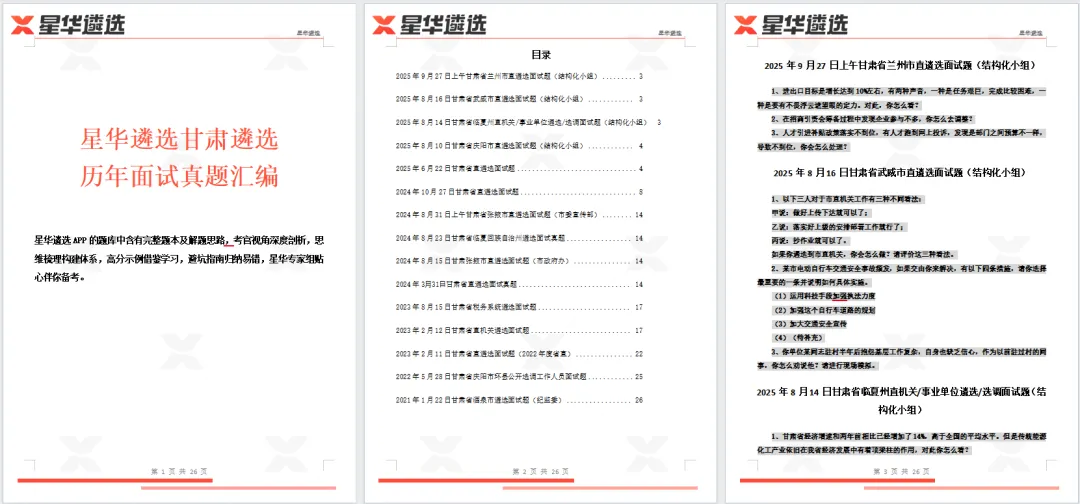 🔥26页甘肃遴选面试真题汇编🔥