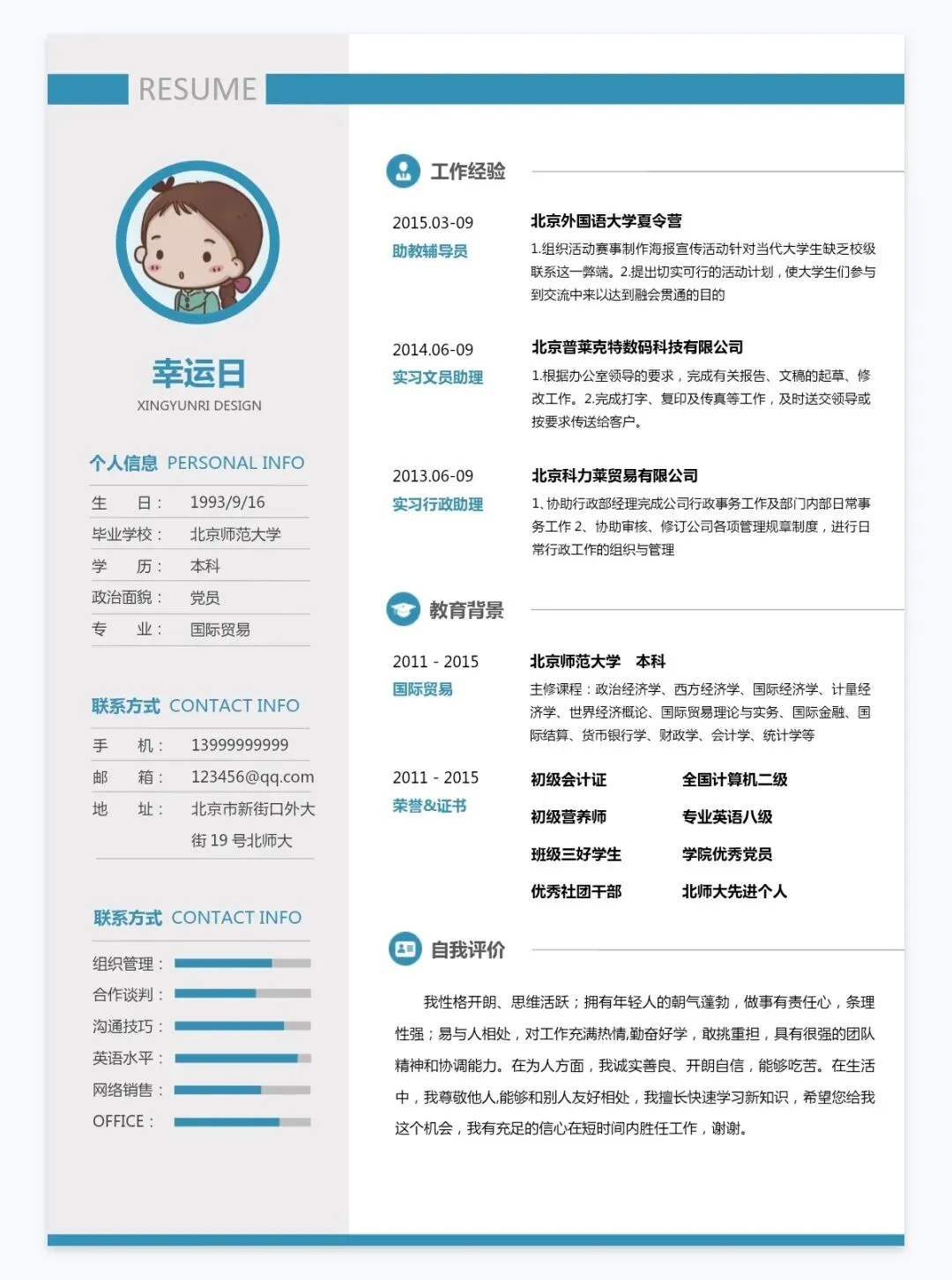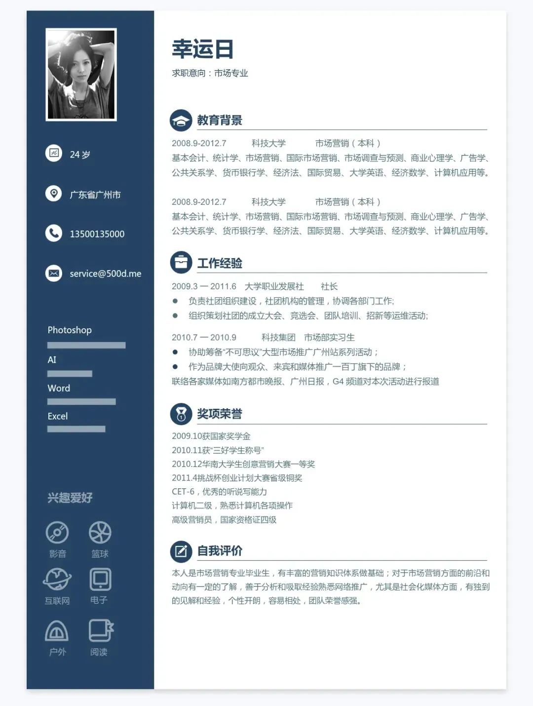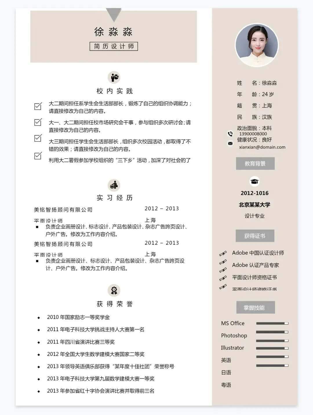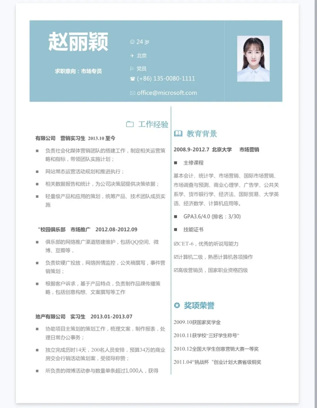 本文内容分享:单页简历模板